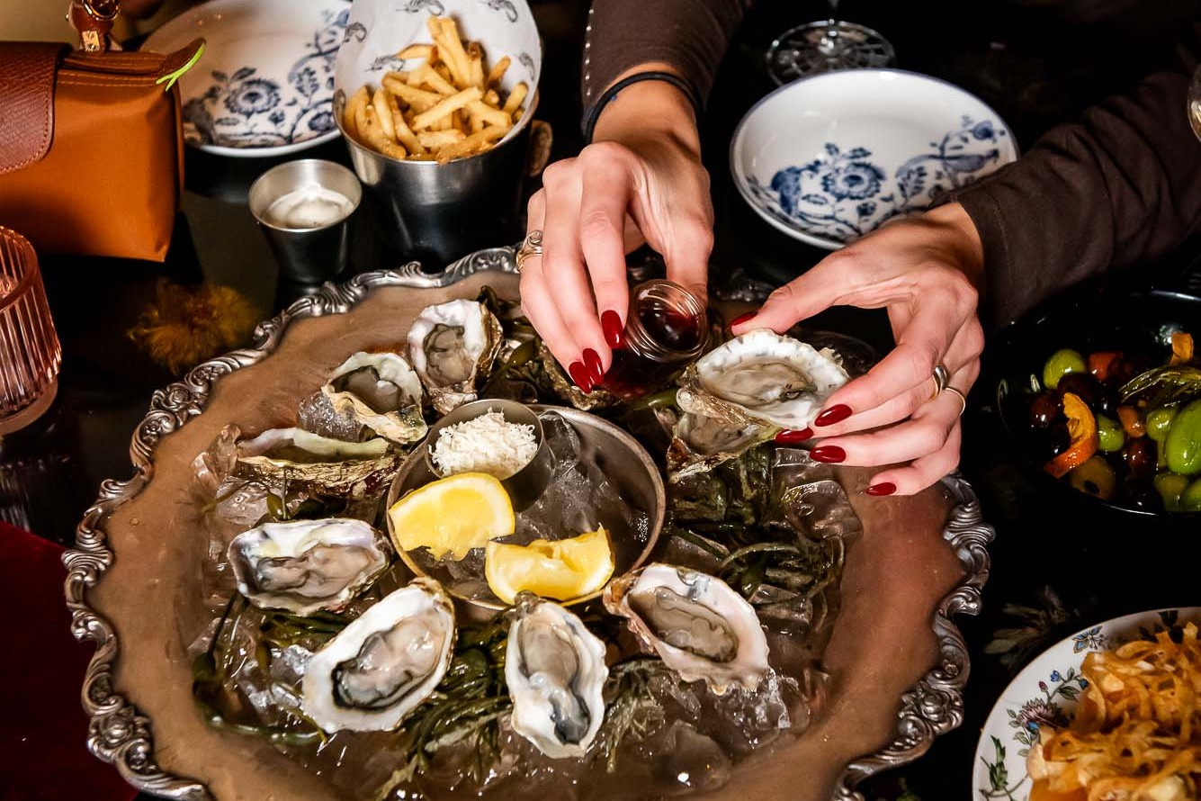 Sharing is made easy with Sip & Snack Pour Deux, featuring two martinis of your choice, half a dozen oysters, and three satisfying bites.
