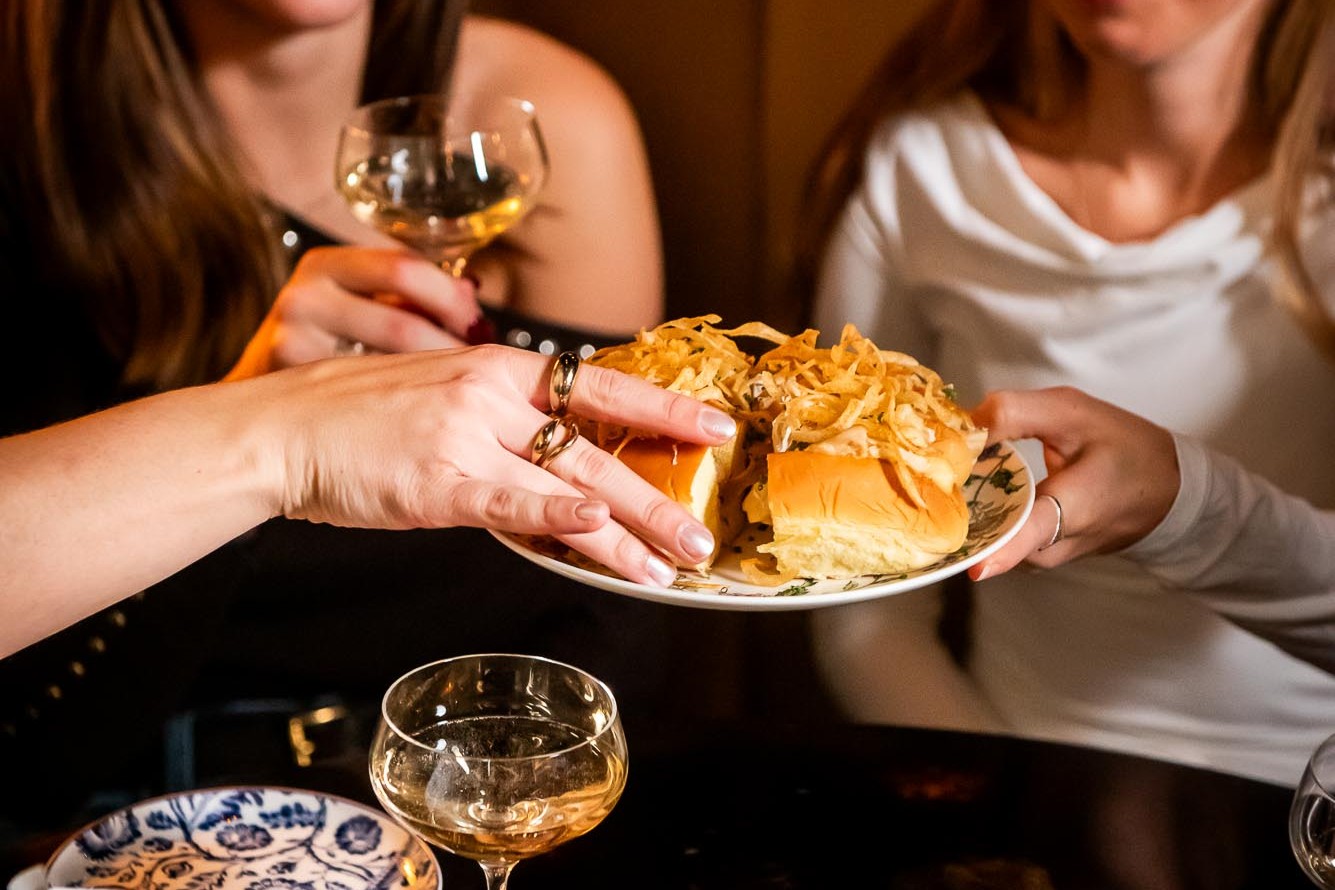 If your V-day plans call for besties, cocktails, and a cute outfit, slip into our secret speakeasy Bonne Nuit for A Galentine’s Soirée. On the menu? Girl dinner! Well, French Girl Dinner. Think elevated bites meant for grazing, including charcuterie boards, beef tartare crostini, oysters, indulgent caviar service, marinated olives, and truffle fries.